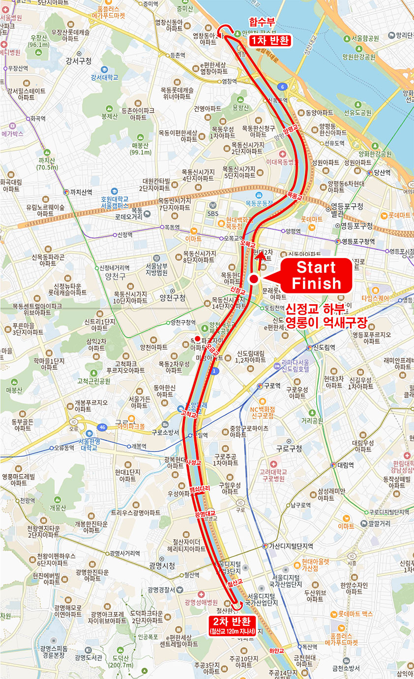 영롱이억새구장에서 "출발/도착" 하는 것은 변동없으나, 마라톤 주로 코스는 변경될 수 있습니다.